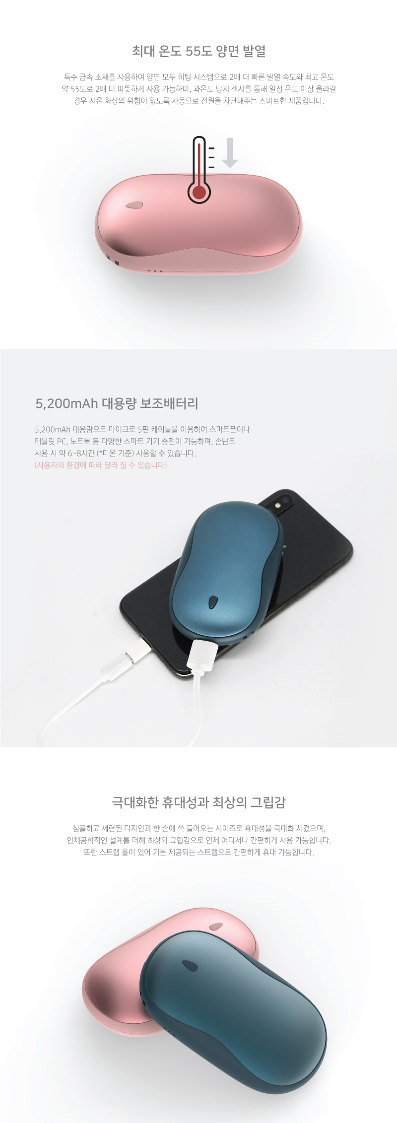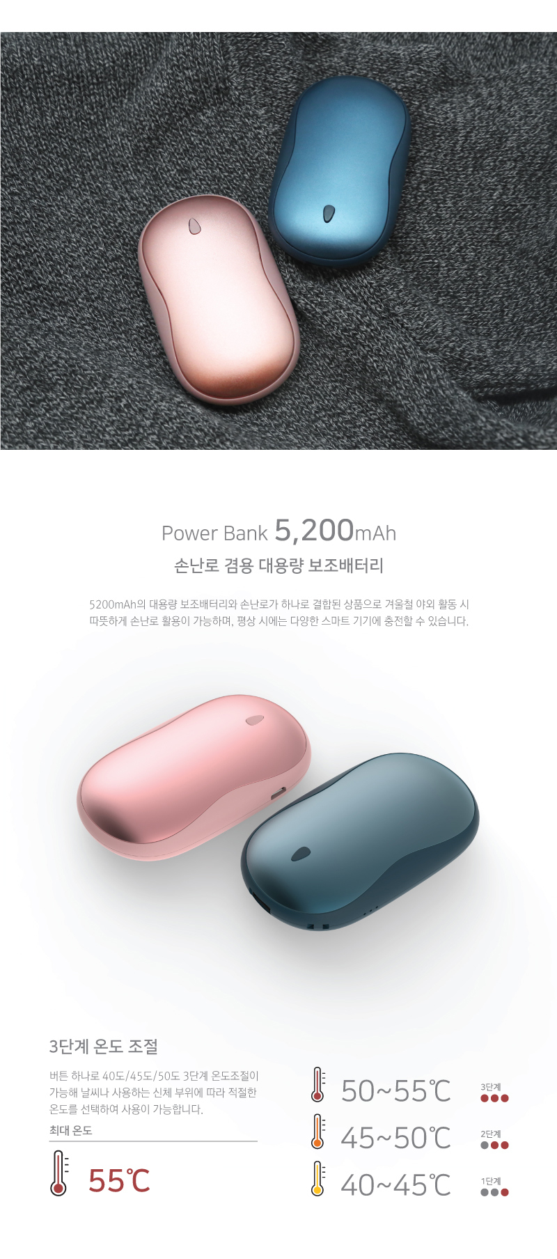 추운 계절 등산, 낚시, 캠핑 등 야외 활동이나 출퇴근 시 더욱 따뜻하게 해줄 손난로 겸용 보조배터리입니다.