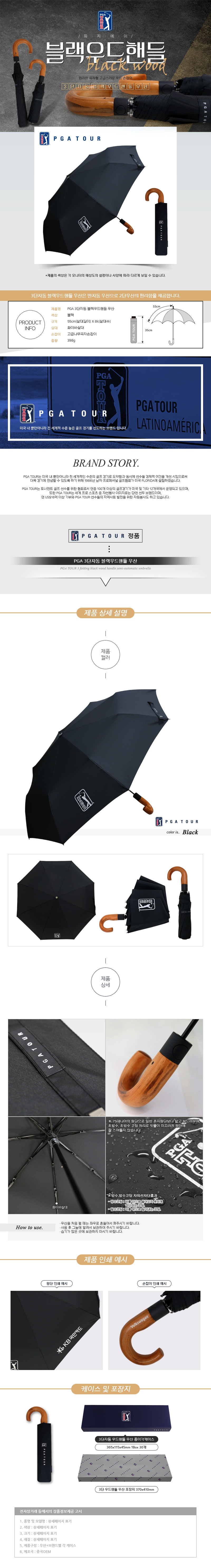 PGA 3단자동 블랙우드핸들 우산