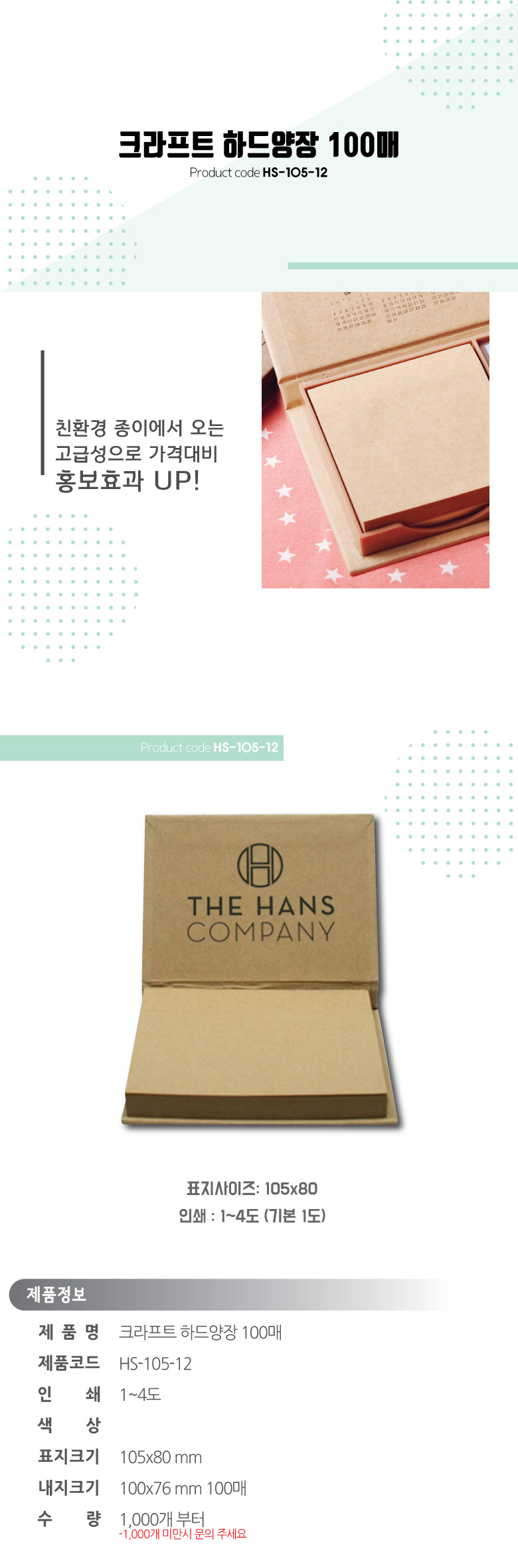 크라프트 하드양장 포스트잇 100매 HS-105-12