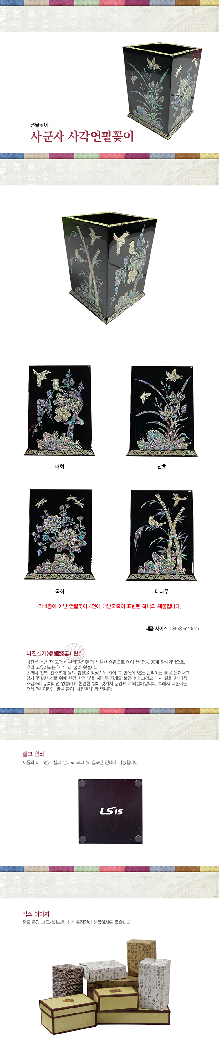 사군자사각연필꽂이