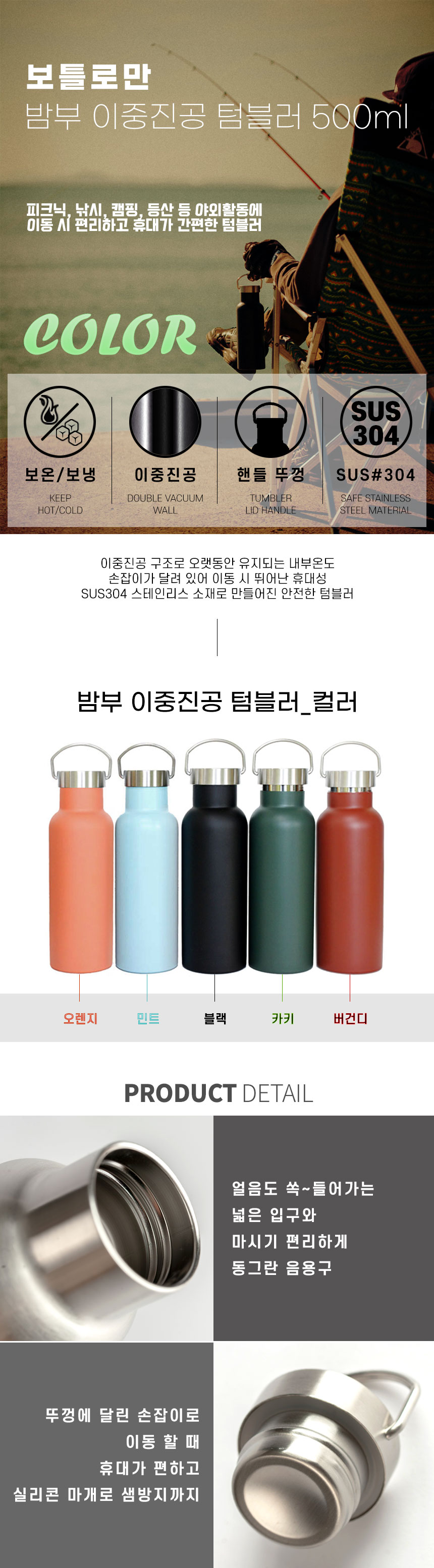 상품 이미지: 밤부 이중진공 컬러 텀블러 500ml