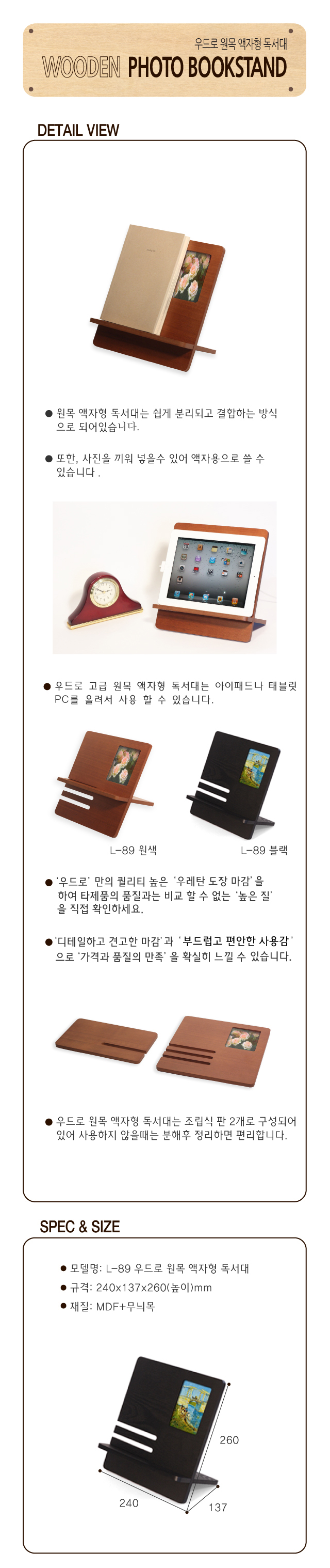 원목 액자형 독서대 L-089