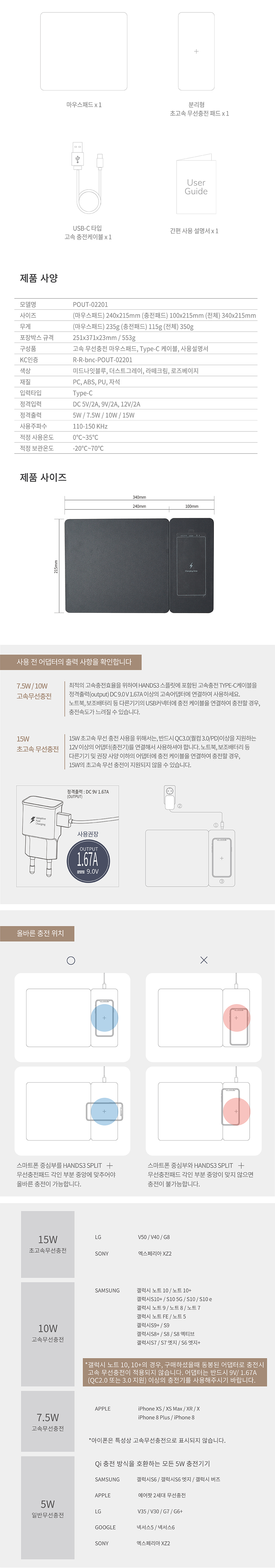 상품 이미지: HANDS3 SPLIT 분리형 고속무선충전 마우스패드