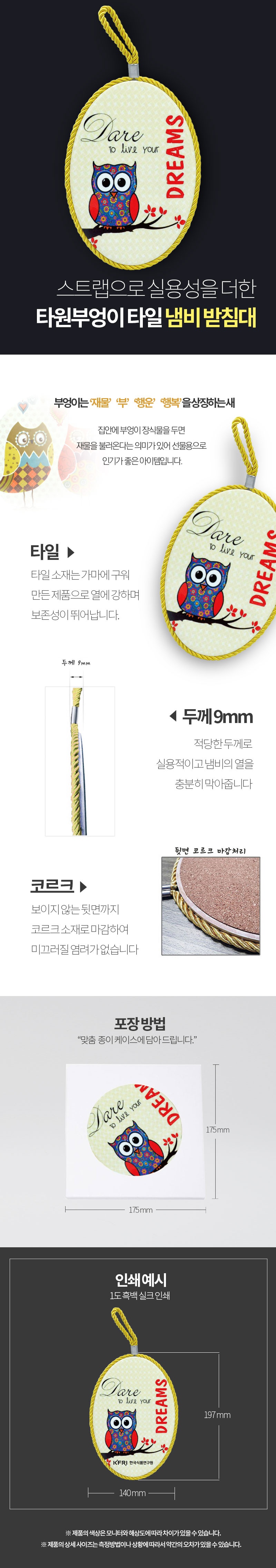 타원 부엉이 타일냄비받침