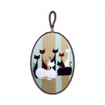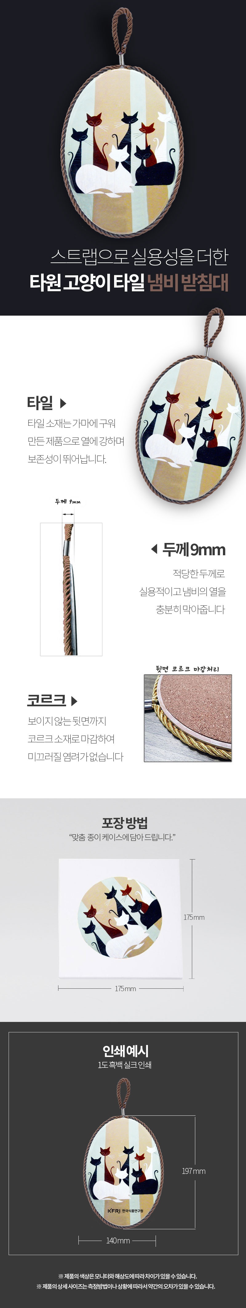 타원 고양이 타일냄비받침