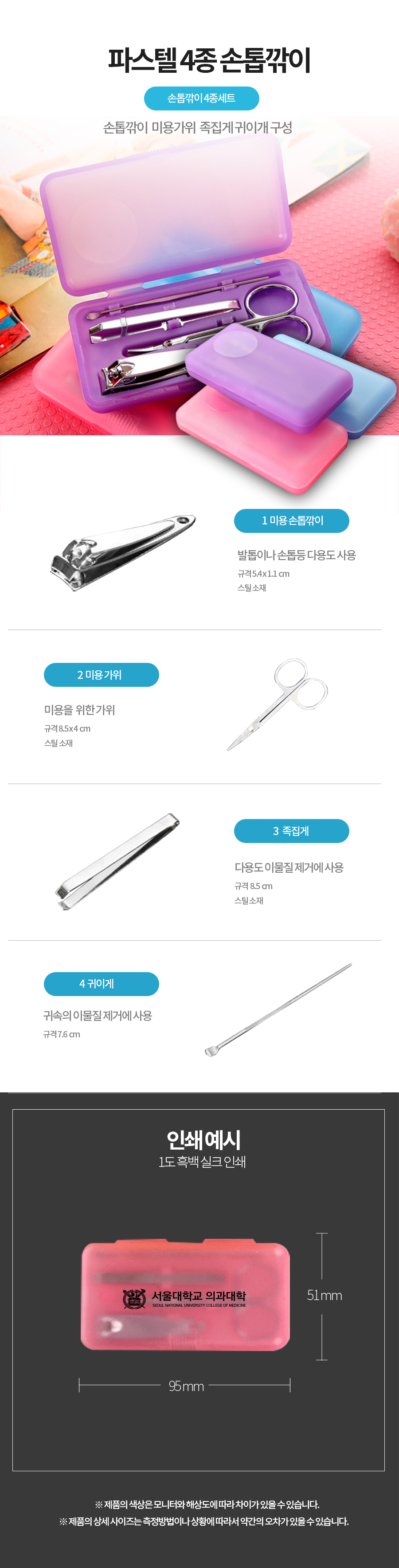 파스텔 4종 손톱깎이