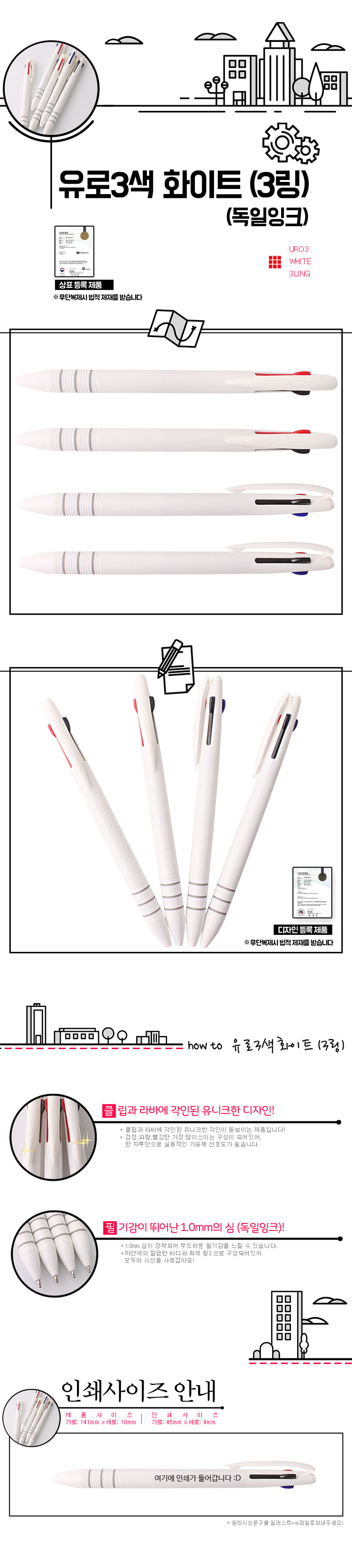유로3색 화이트3링볼펜(독일잉크)