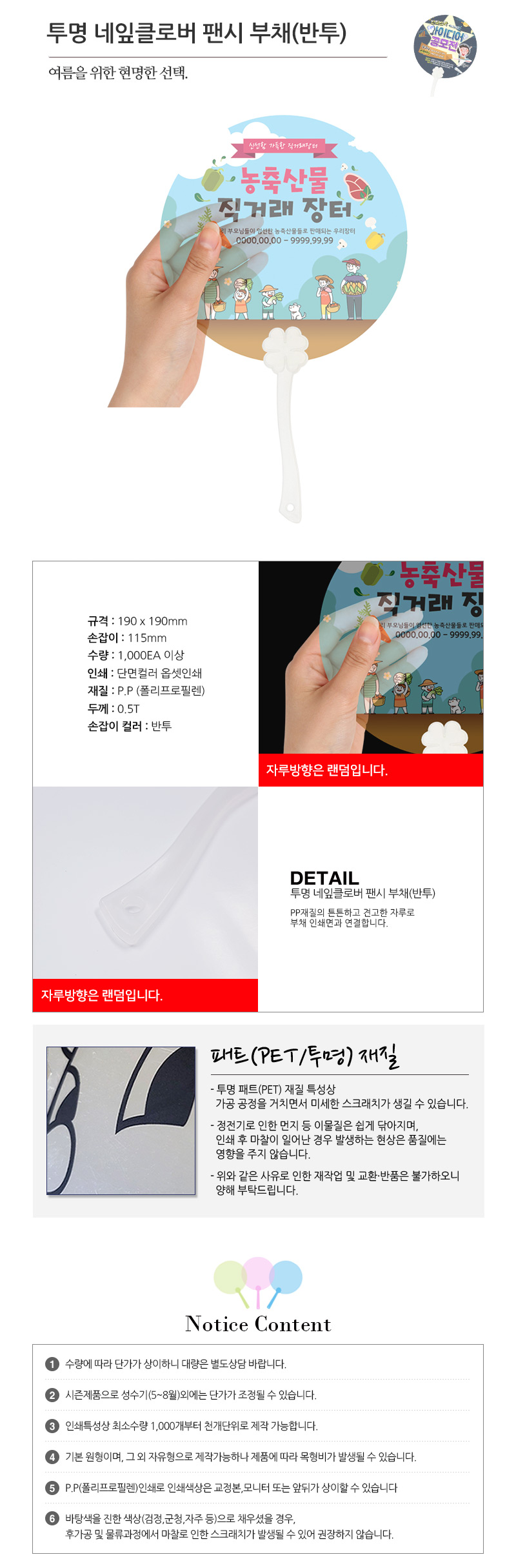 투명 네잎클로버 팬시 부채(반투)