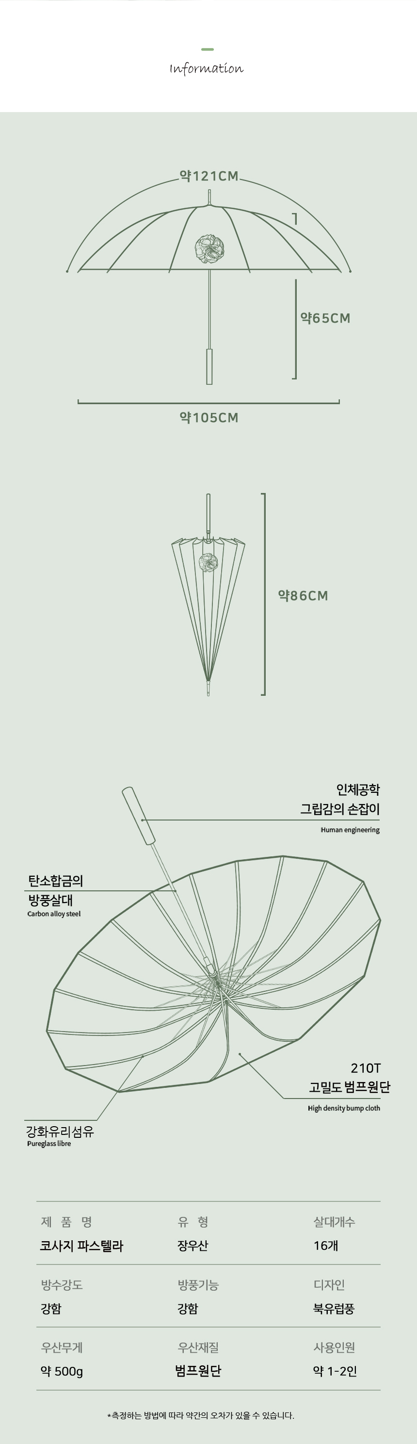 파스텔라 16K 코사지 장우산 PSC