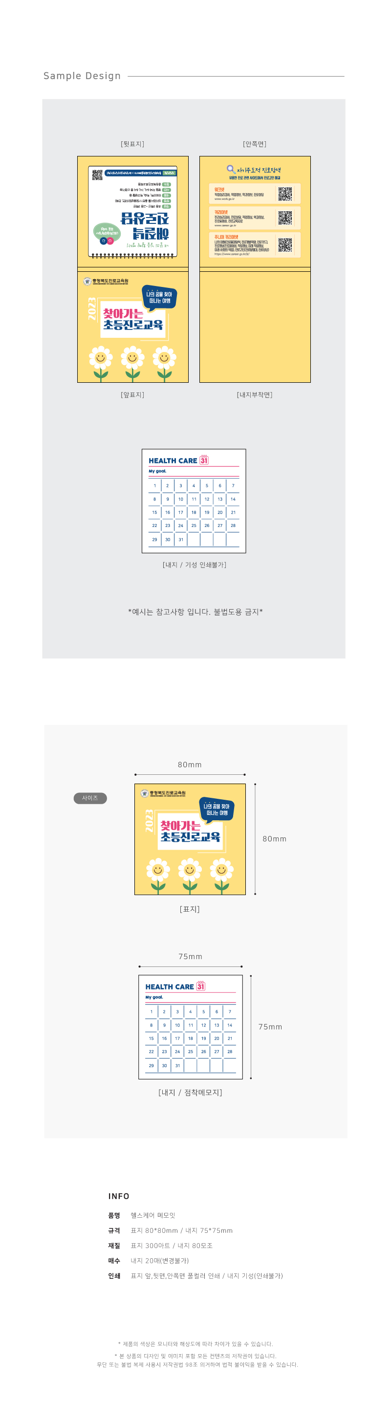 표지 앞.뒷면.안쪽면 풀컬러 인쇄포함 / 헬스케어 내지 20매 고정.인쇄불가