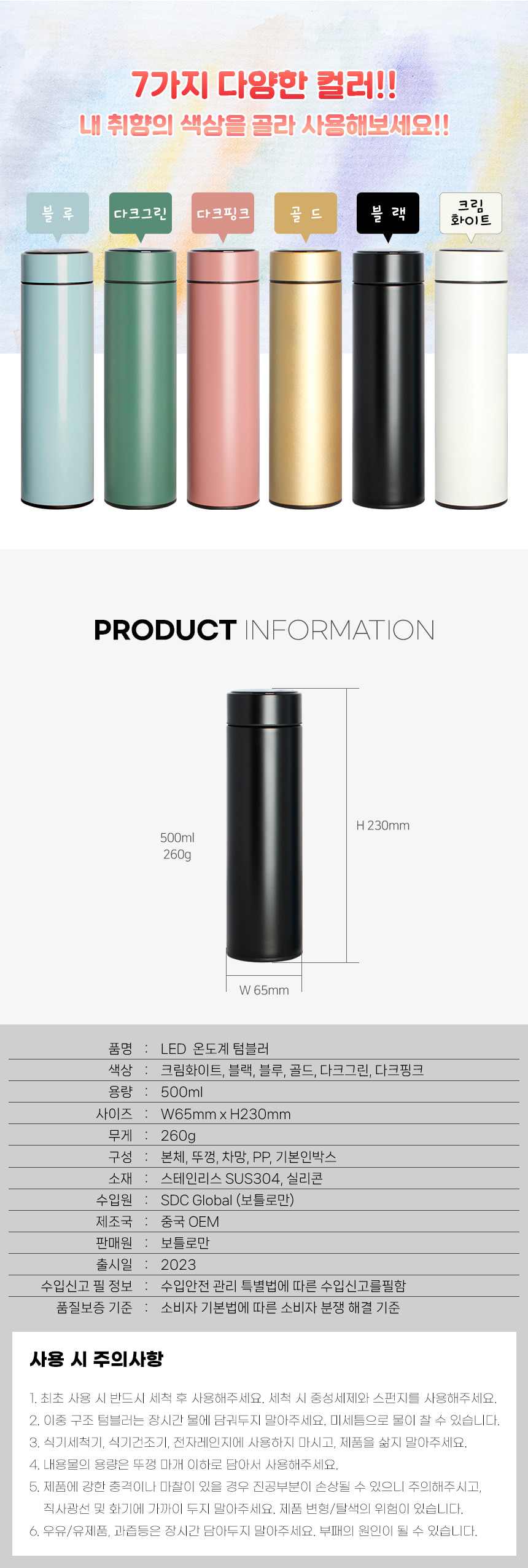 LED온도계 텀블러 500ml