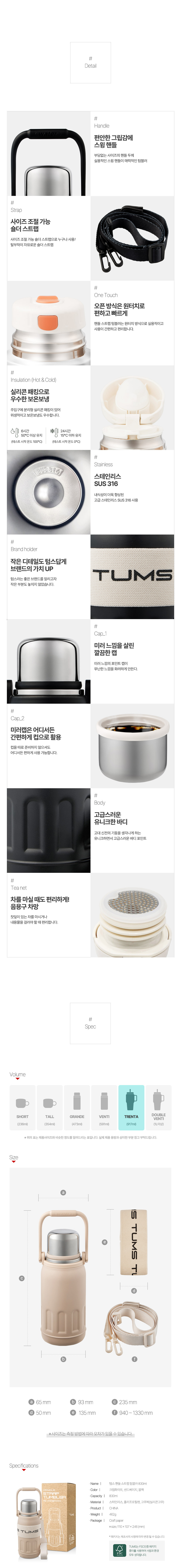 텀스 핸들 스트랩 텀블러 830ml
