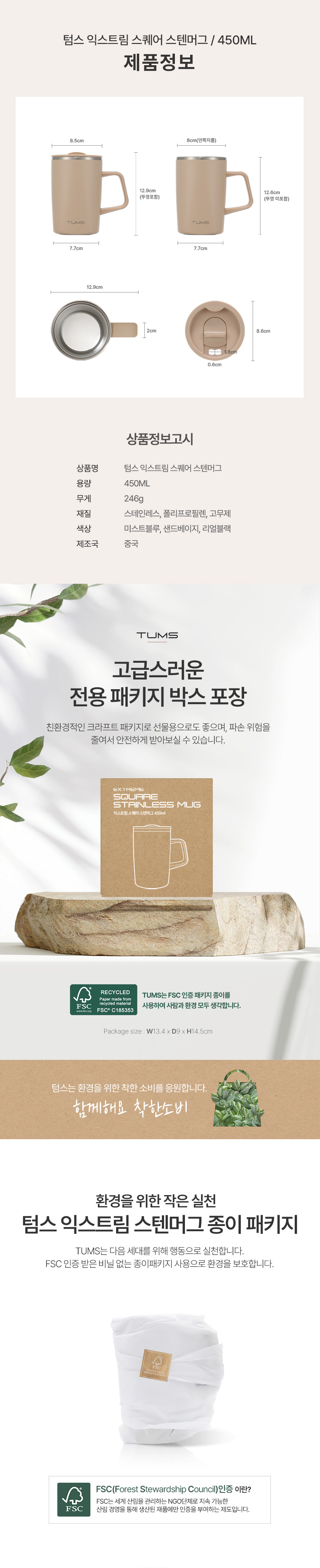 텀스 익스트림 스퀘어 스텐머그 450ml