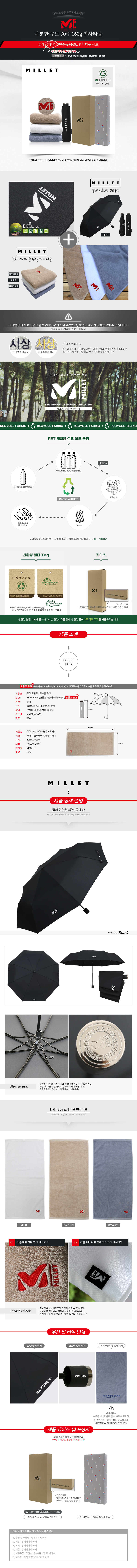 밀레 친환경3단수동+160g면사타올세트