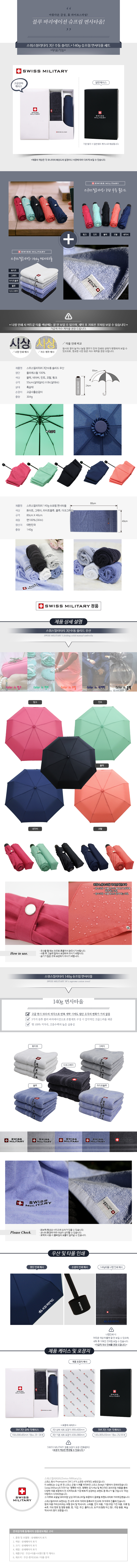 스위스밀리터리 3단수동솔리드+140g면사타올세트