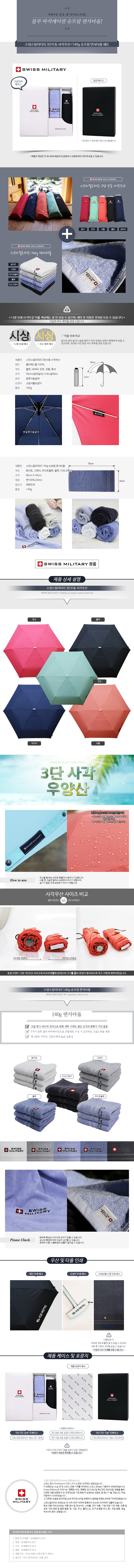 스위스밀리터리 3단수동사각우산+140g면사타올세트