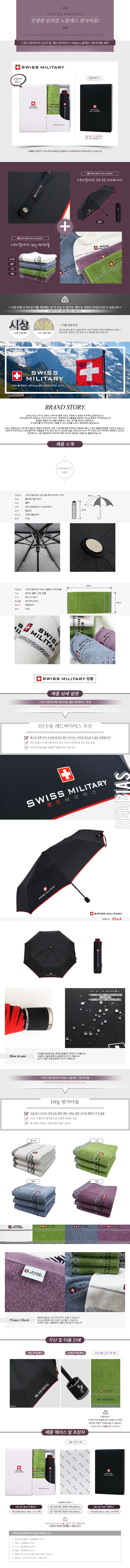 스위스밀리터리 3단수동레드바이어스+160g면사타올세트