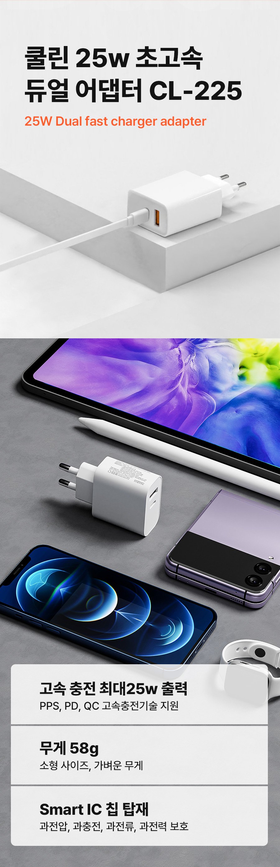 상품 이미지: 쿨린 2포트 초고속충전기(25W) 225