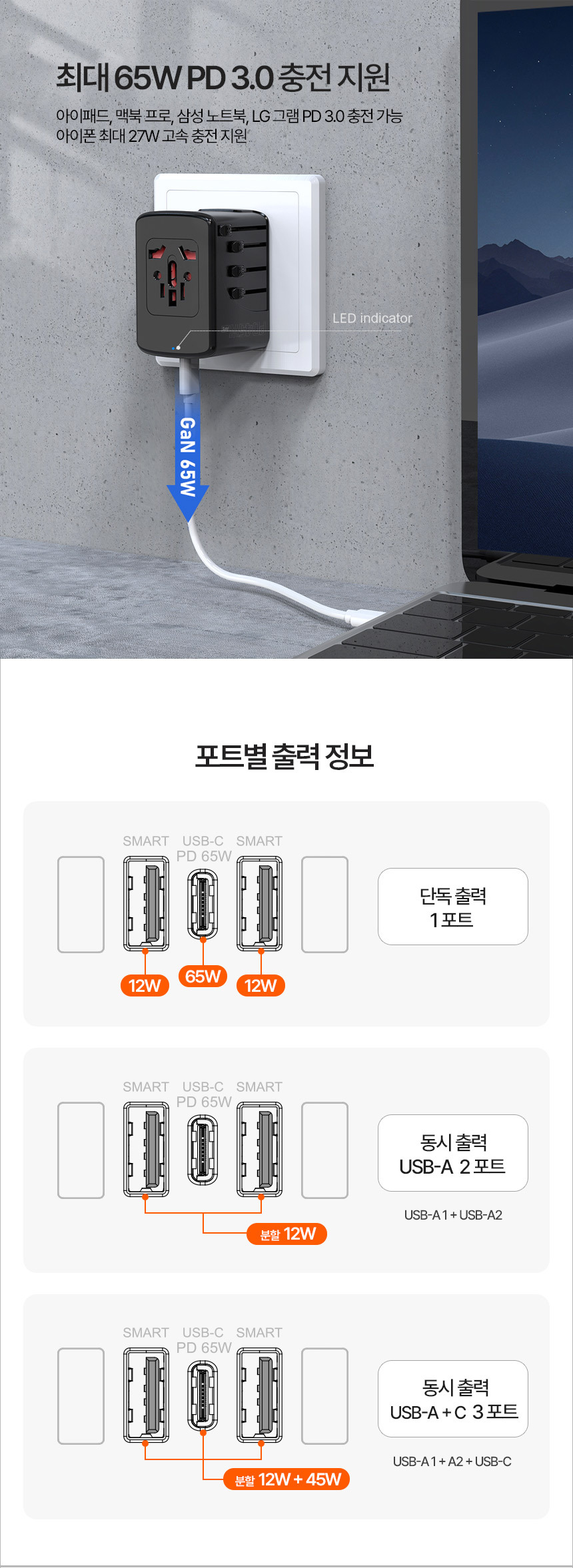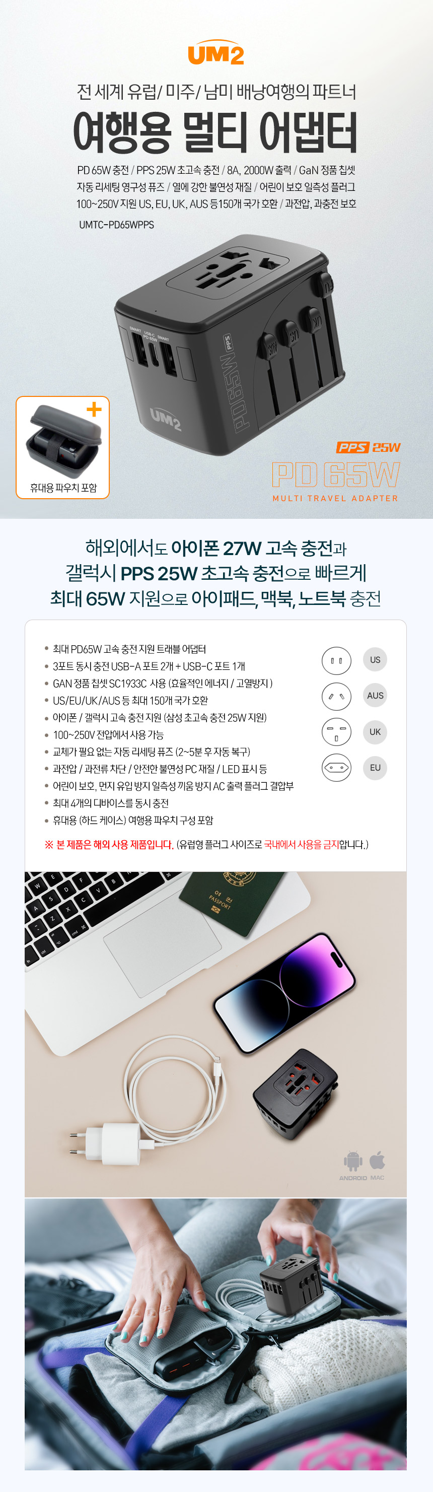 여행용 멀티어댑터 65W UMTC-PD65WPPS