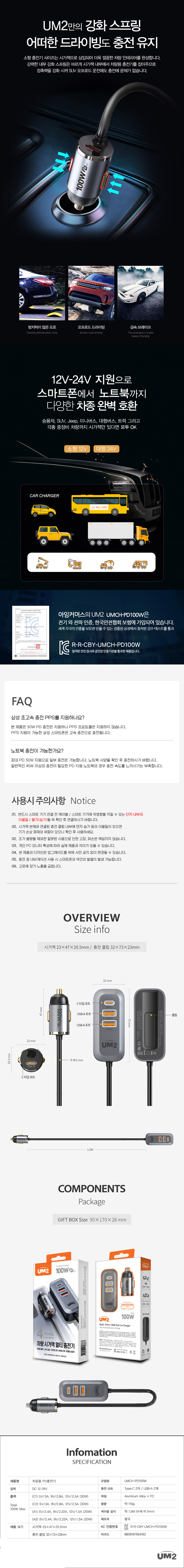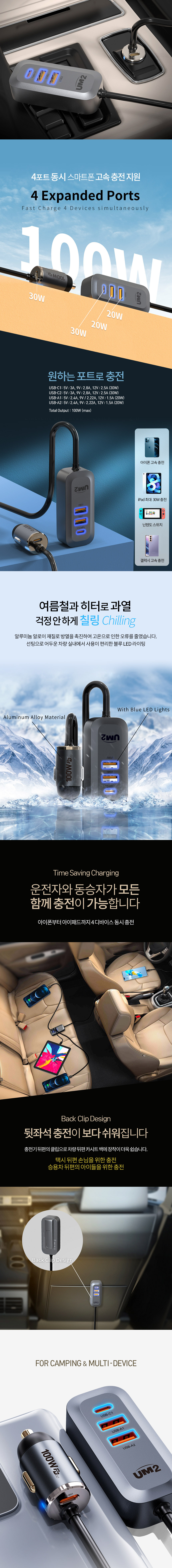 차량용 4포트 고속충전기 UMCH-PD100W