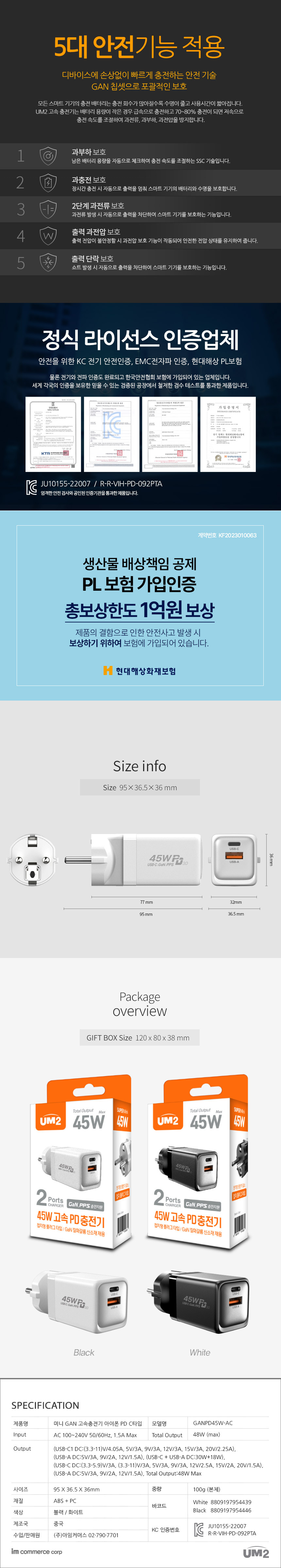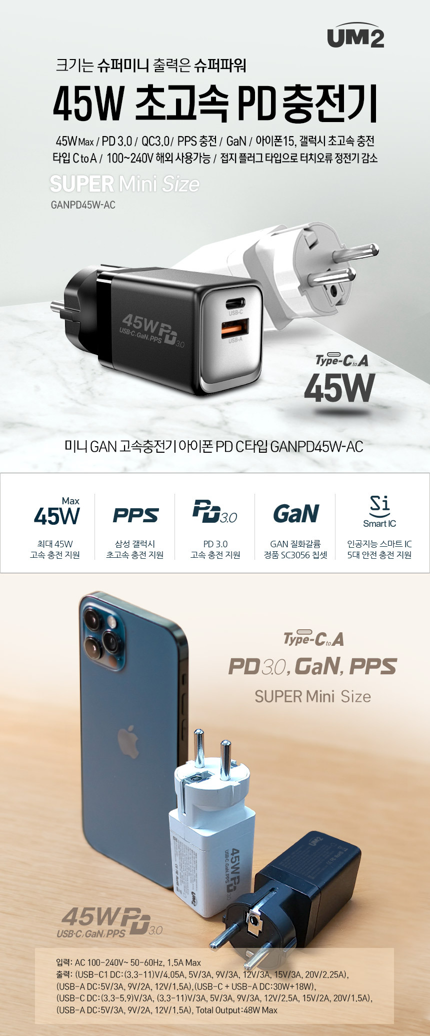 45W 초고속 PD충전기 GANPD45W-AC
