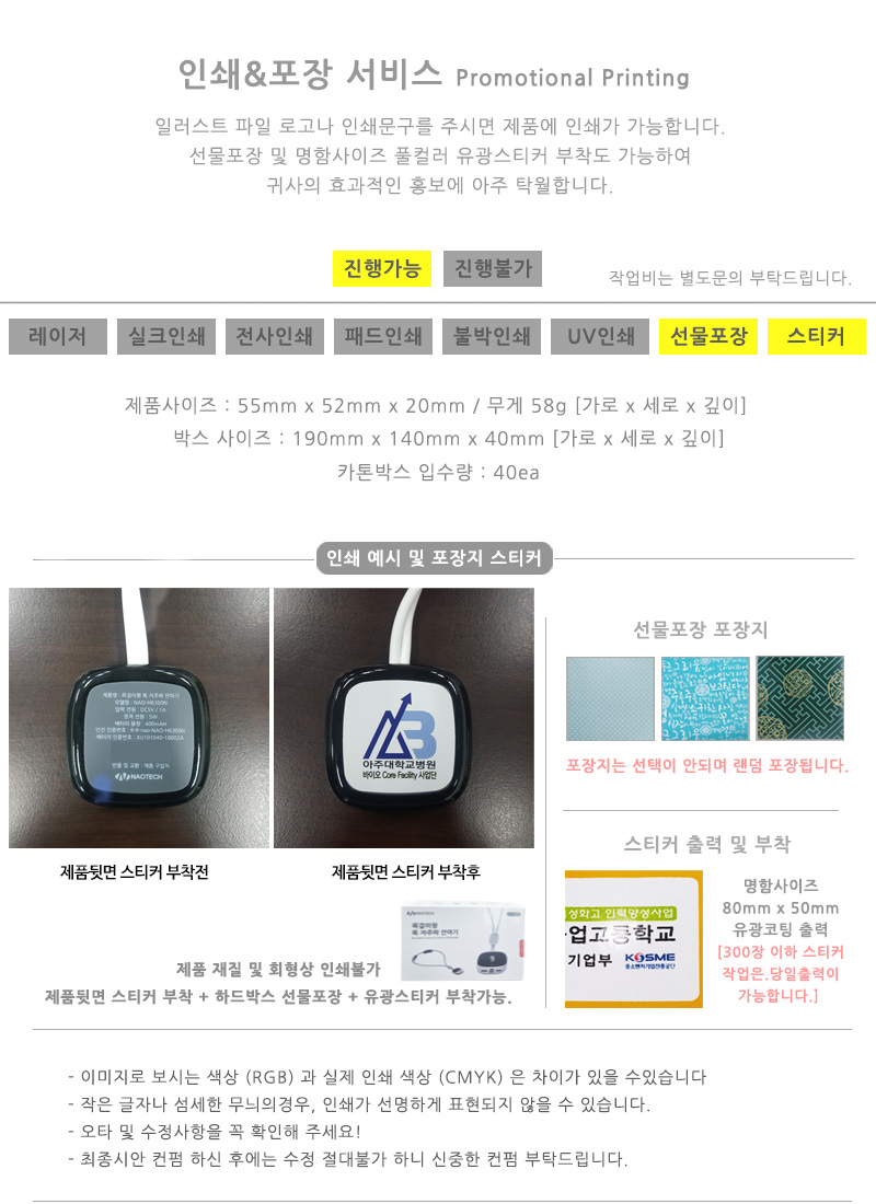• 배송비는 무료배송을 원칙으로 하나 기본수량이하 제작시 배송비가 추가될 수 있습니다.