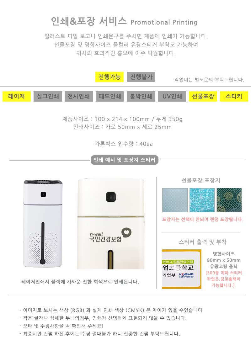 • 배송비는 무료배송을 원칙으로 하나 기본수량이하 제작시 배송비가 추가될 수 있습니다.