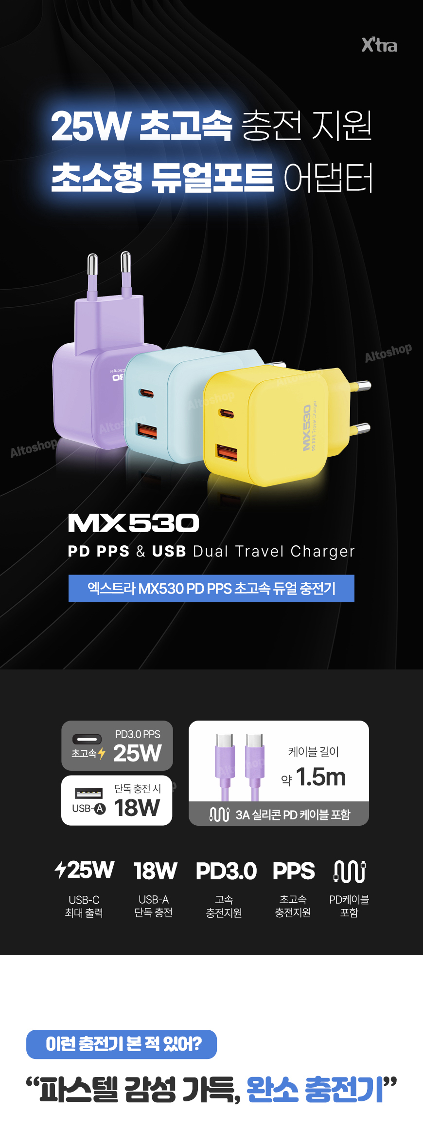 엑스트라 파스텔컬러 초고속 듀얼충전기 25W