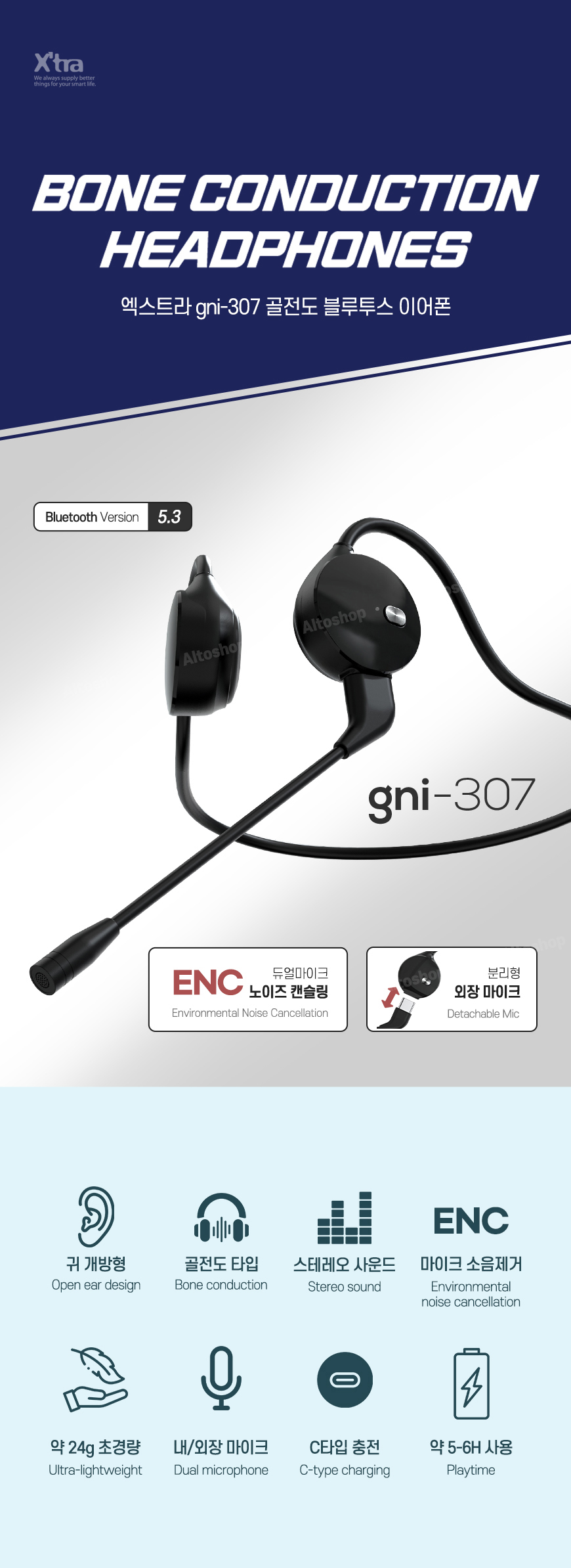 노이즈캔슬링 초경량 마이크분리형 골전도이어폰 gni-307