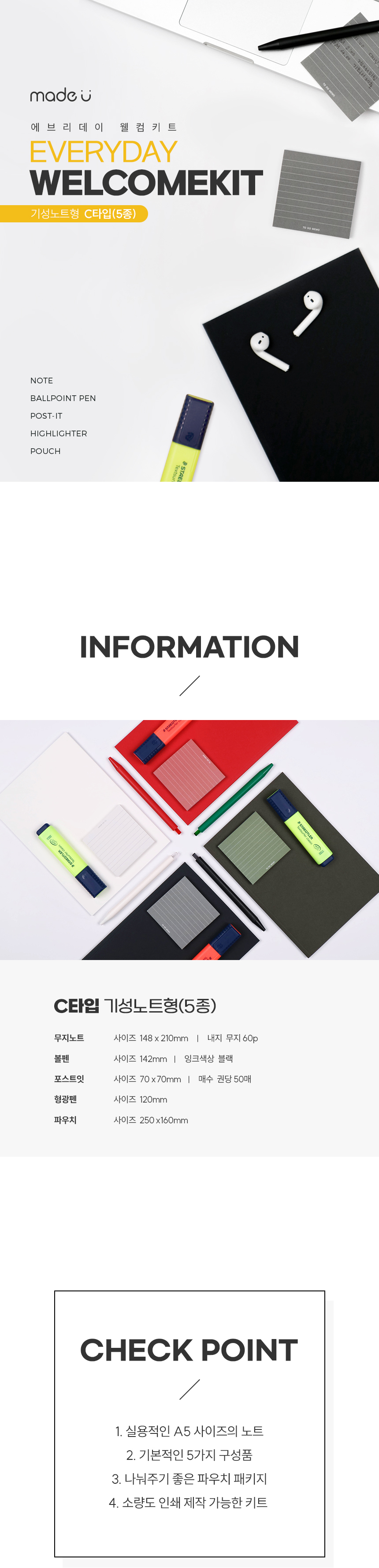 파우치 인쇄포함 /노트_볼펜_형광펜 인쇄비 각 200원 추가