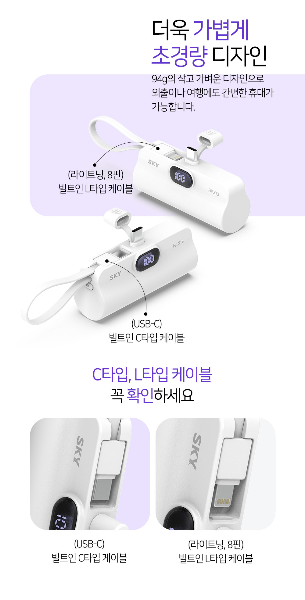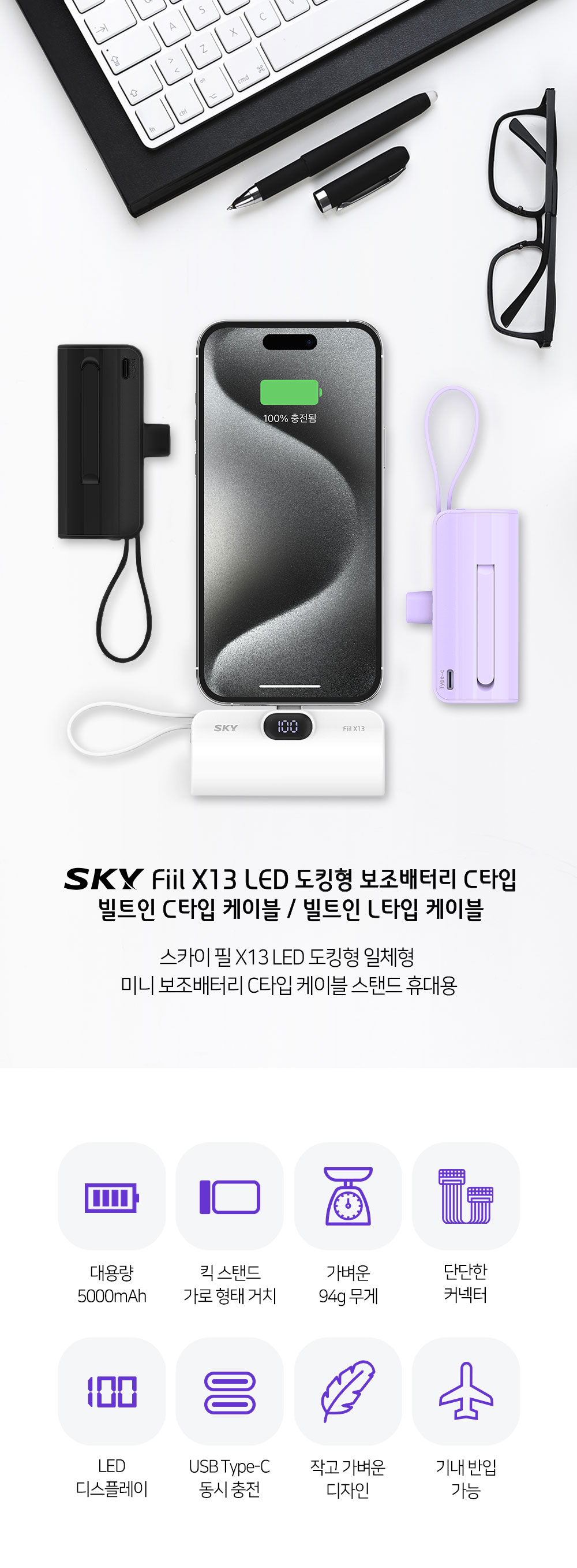 스카이 필 X13 LED 도킹형 보조배터리 5000mAh