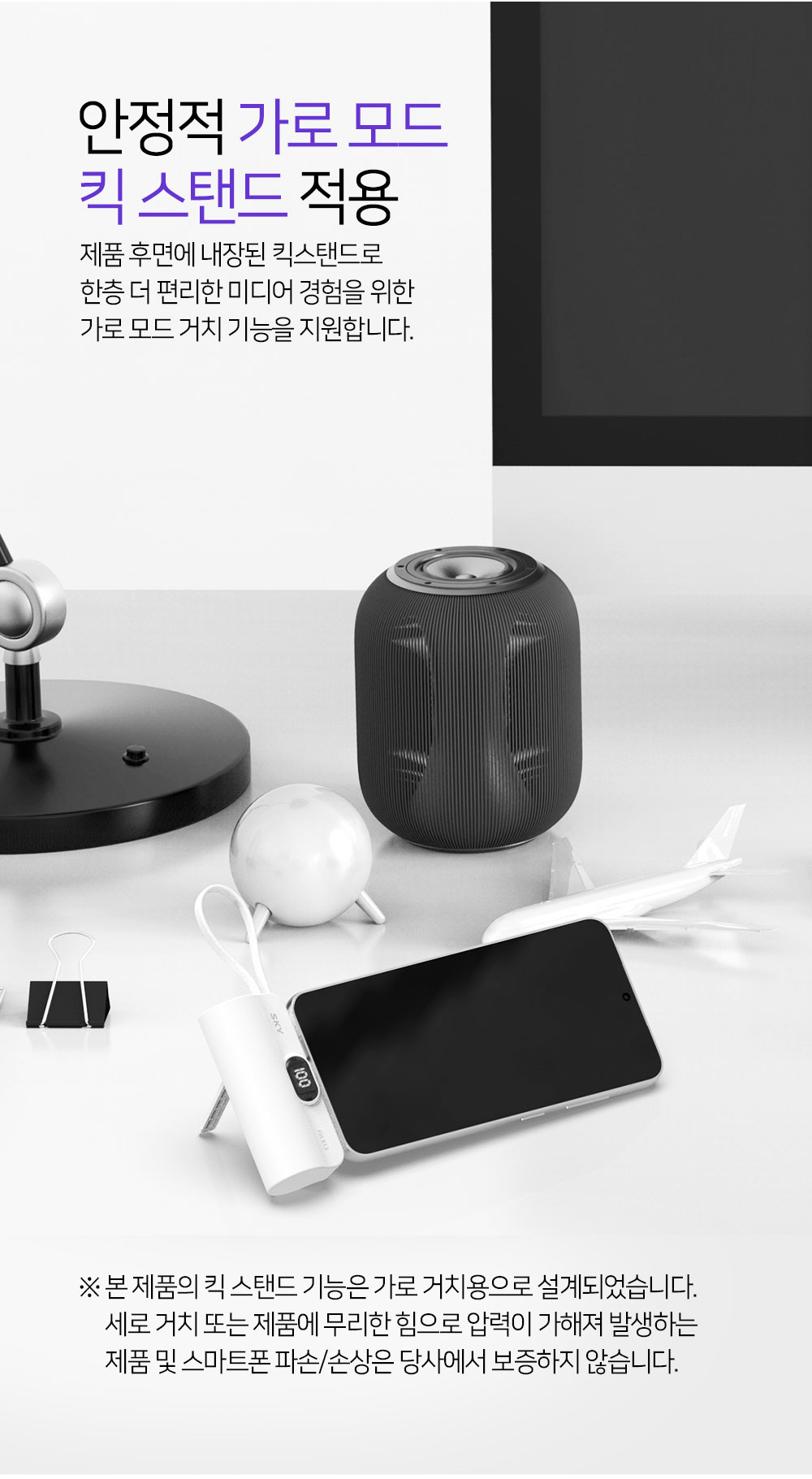 작지만 동시에 충전할 수 있는 2in1 / 94g의 작고 가벼운 디자인 / 안정적 가로모드 킥스탠드 적용