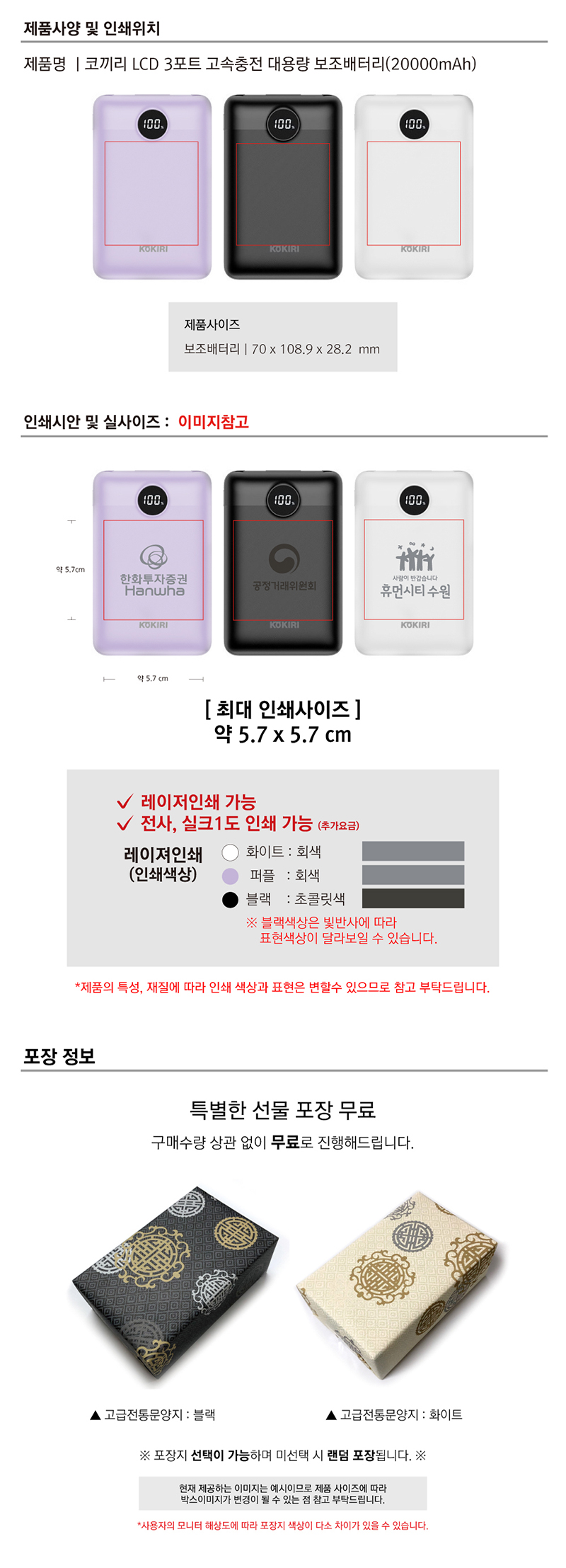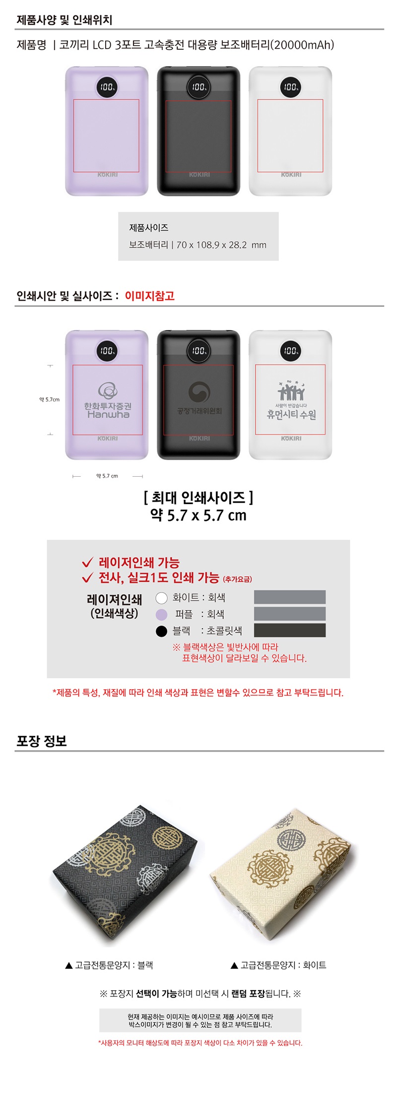 코끼리 LCD 3포트 고속충전 대용량 보조배터리(20000mAh)