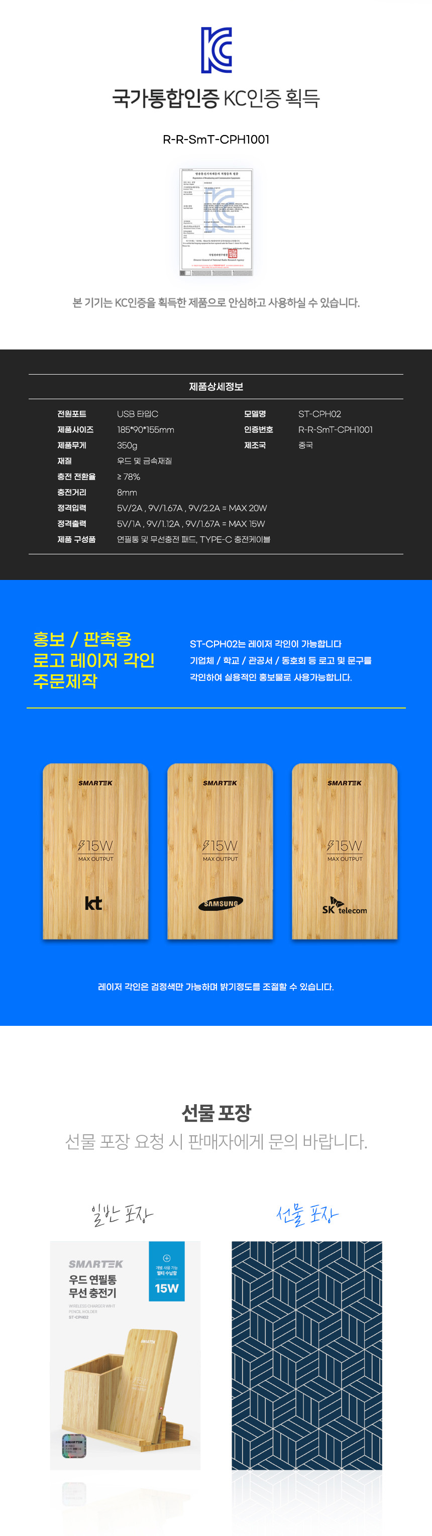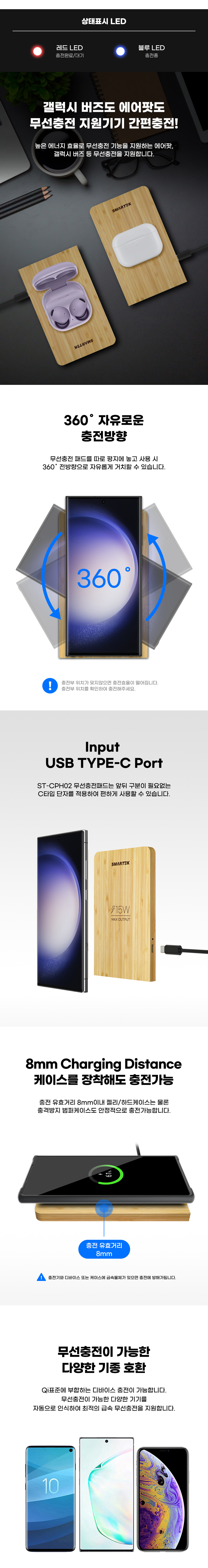 뱀부 우드 연필통 무선충전기 ST-CPH02