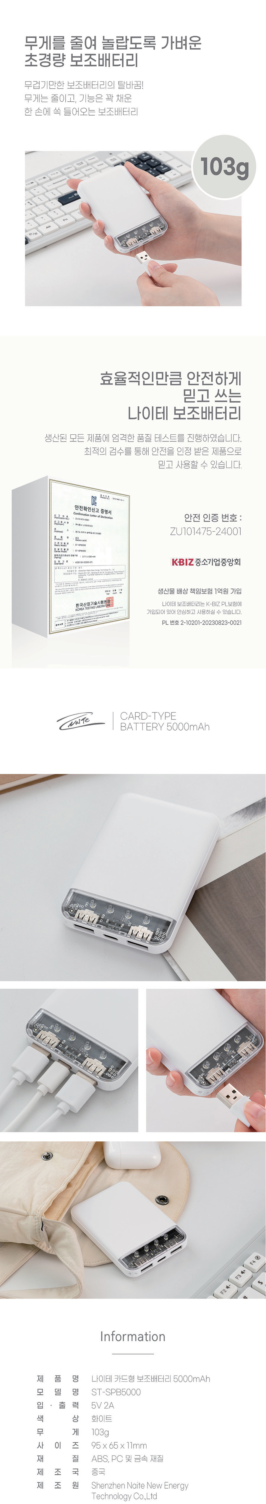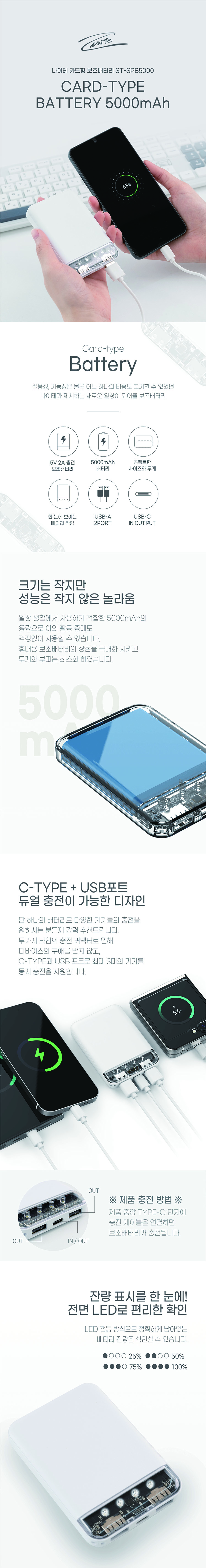 쉔코리아 SPB5000 카드형보조배터리 5000mAh