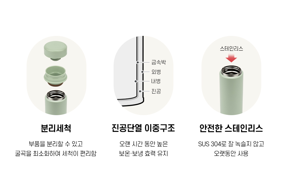 간편한 분리세척 / 진공단열 이중구조 / 안전한 스테인리스