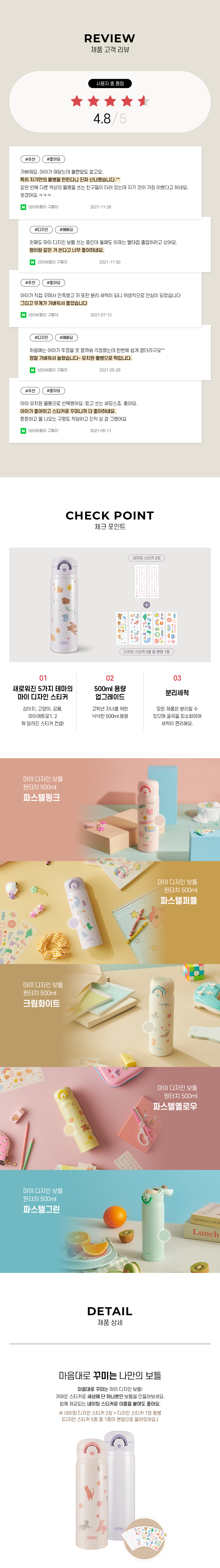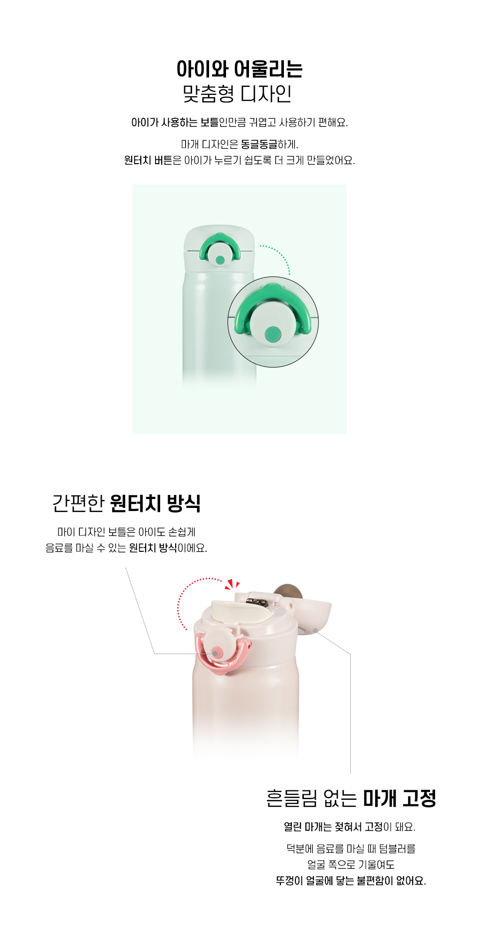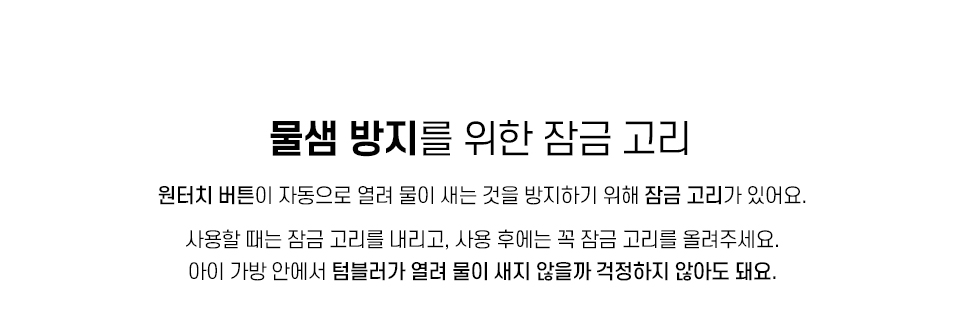마음대로 꾸미는 마이디자인 보틀 / 5가지 테마의 디자인 스티커 / 원터치 오픈 / 잠금고리가 있어 물샘 방지