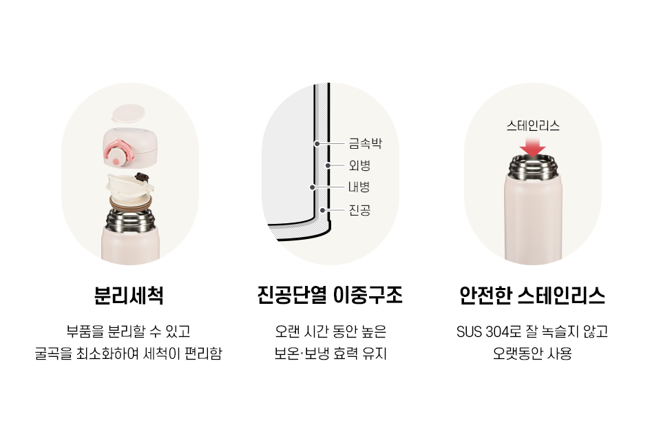 분리세척 / 진공단열 스테인리스 이중구조 / 안전한 스테인리스 재질