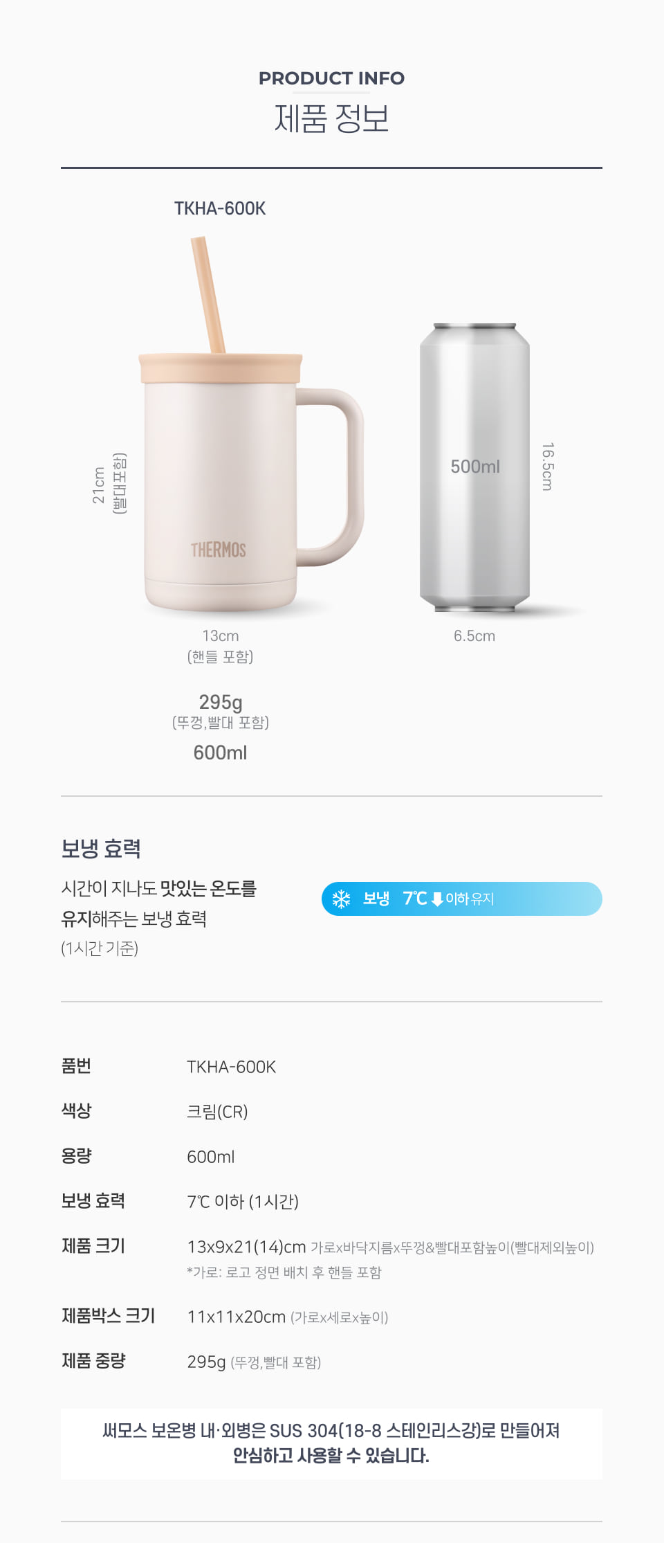 실리콘 뚜껑과 빨대 포함 / 분실 오염시 별도 구매가능 / 동일 용량 대비 작고 가벼움 / 결로 현상 없는 쾌적한 사용감