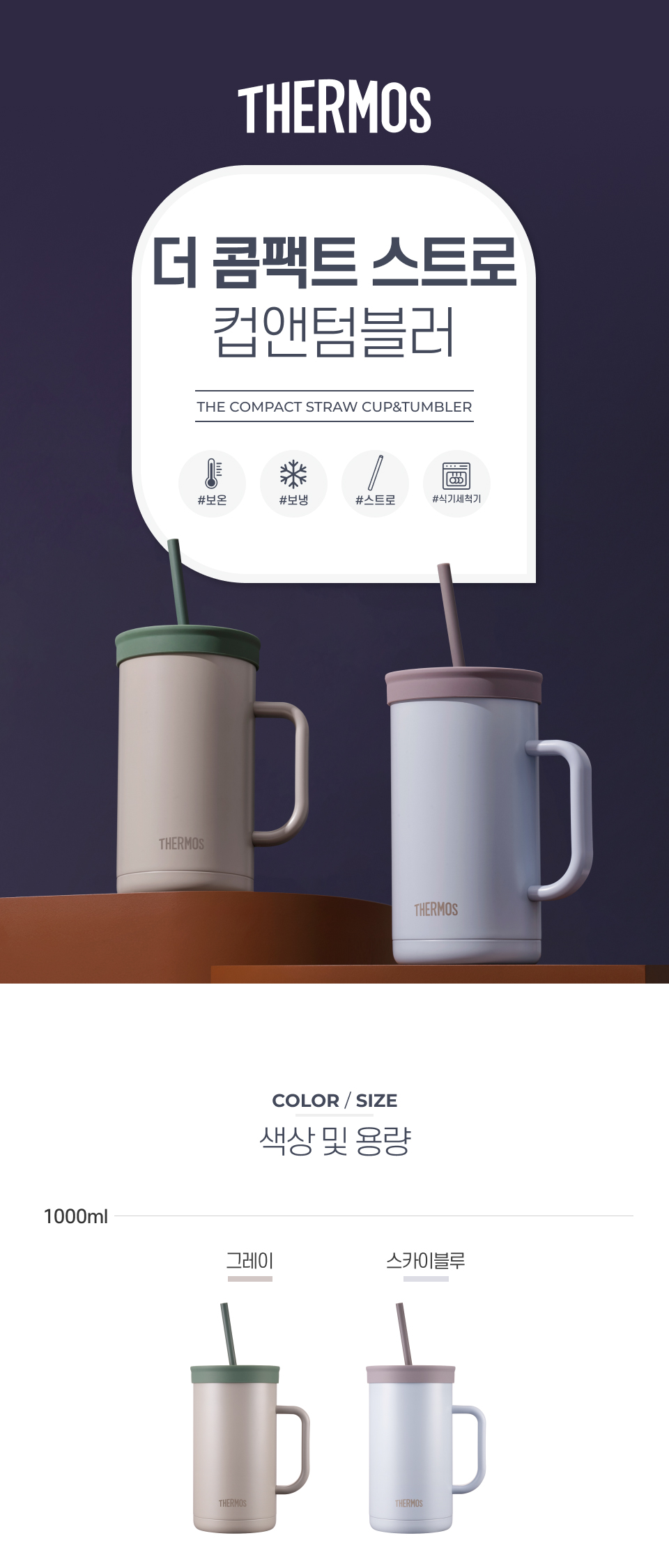 써모스 콤팩트 스트로 컵앤텀블러 1000ml TKHA-1000K
