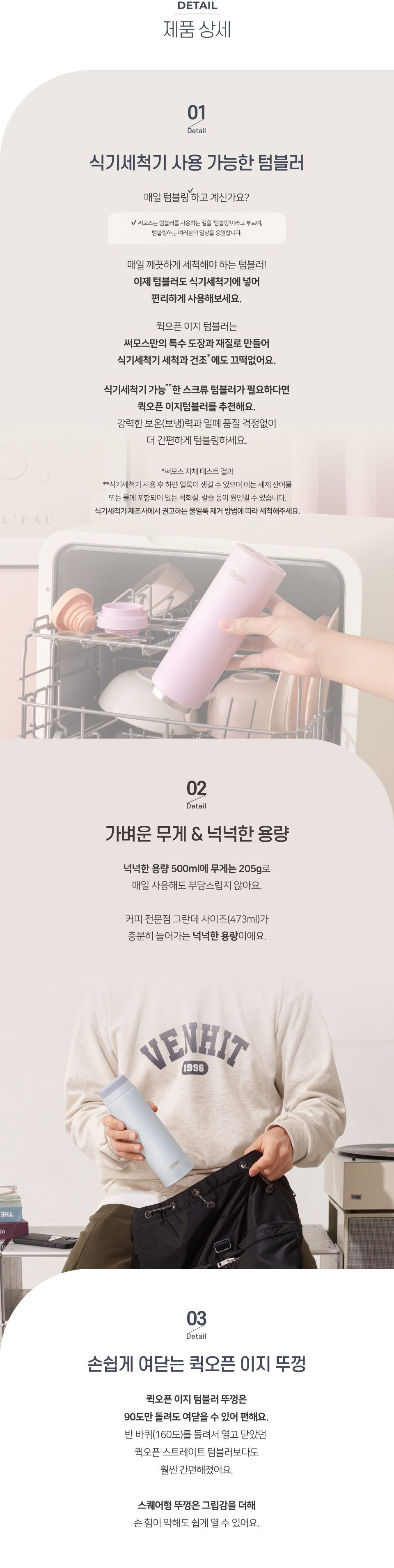 심플하지만 완벽한 마개로 손쉽게 여닫는 이지 뚜껑 / 물 샐 걱정 없는 밀폐구조 / 매일매일 언제 어디서나 안심하고 사용