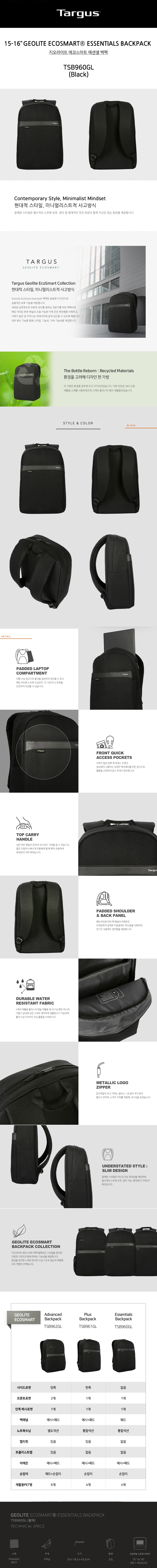 타거스 지오라이트 에코스마트 에센셜 백팩 TSB960GL