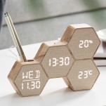 플라이토 허니콤 우드 인테리어 LED탁상시계 i117