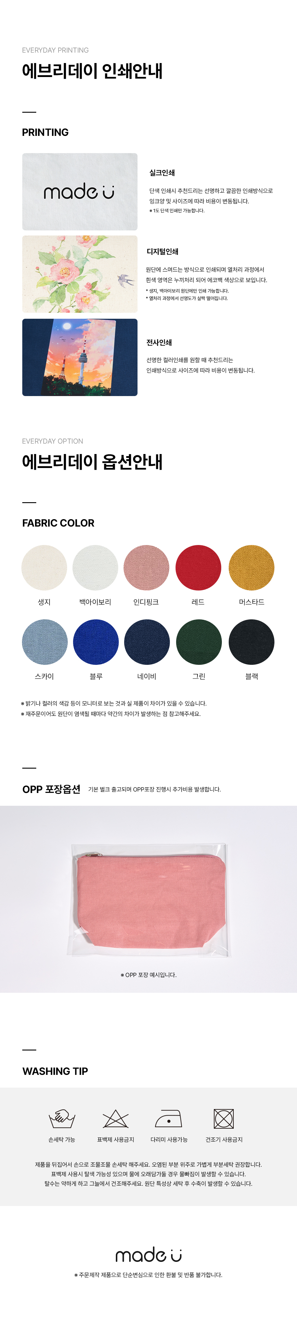 한색상당 최소 100개이상 진행가능 / 풀칼라인쇄는 생지와 백아이보리 원단에만 가능