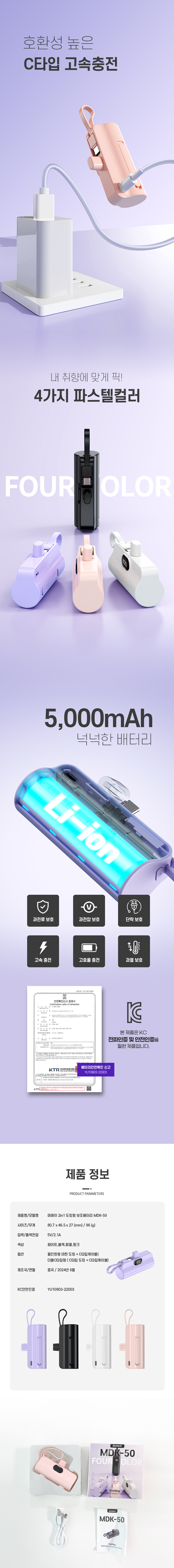 엑티몬 일체형 보조배터리 5000mAh(C타입/8핀)