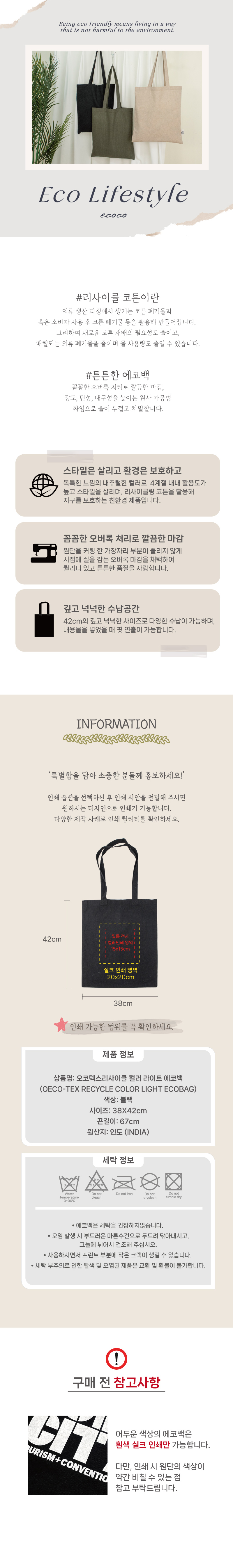 오코텍스리사이클_컬러 라이트에코백 블랙