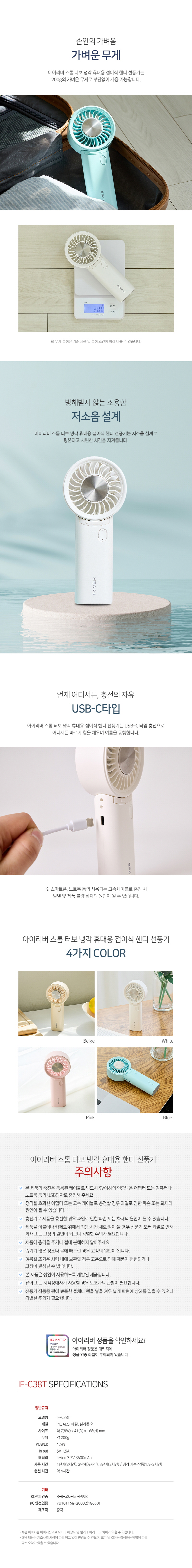 아이리버 강력 터보 냉각 접이식 휴대용선풍기 IF-C38T