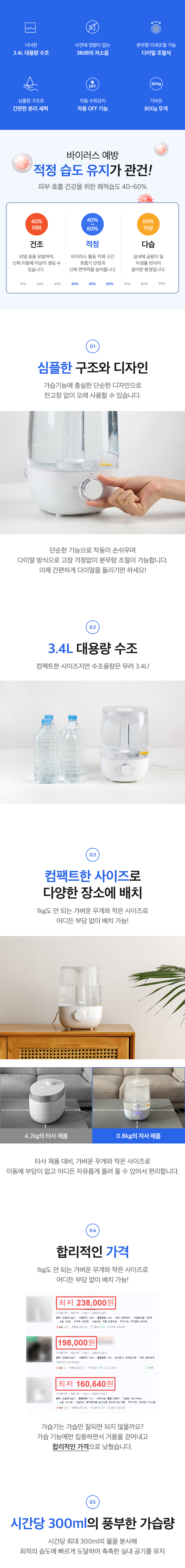 넉넉한 3.4L 수조 / 다이얼 조절식 : 분무량 미세조절 가능 / 분무량 : 최대 300ml/h