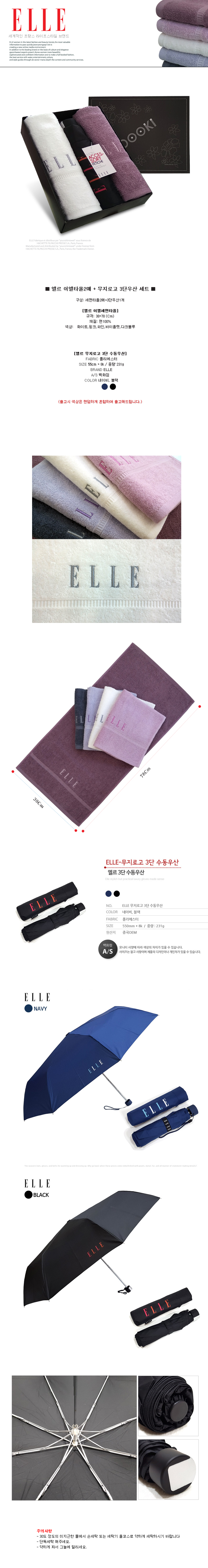 엘르 물결타올2매+엘르 네츄럴 3단우산세트