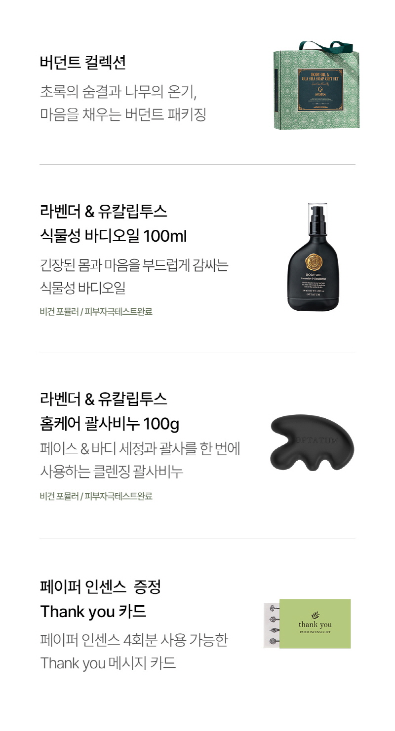 옵타움 릴렉싱 바디오일&괄사비누 선물세트(페이퍼에센스증정)